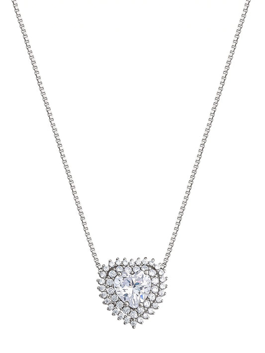 Fine Silver Plated Cubic Zirconia Heart Necklace, 18”